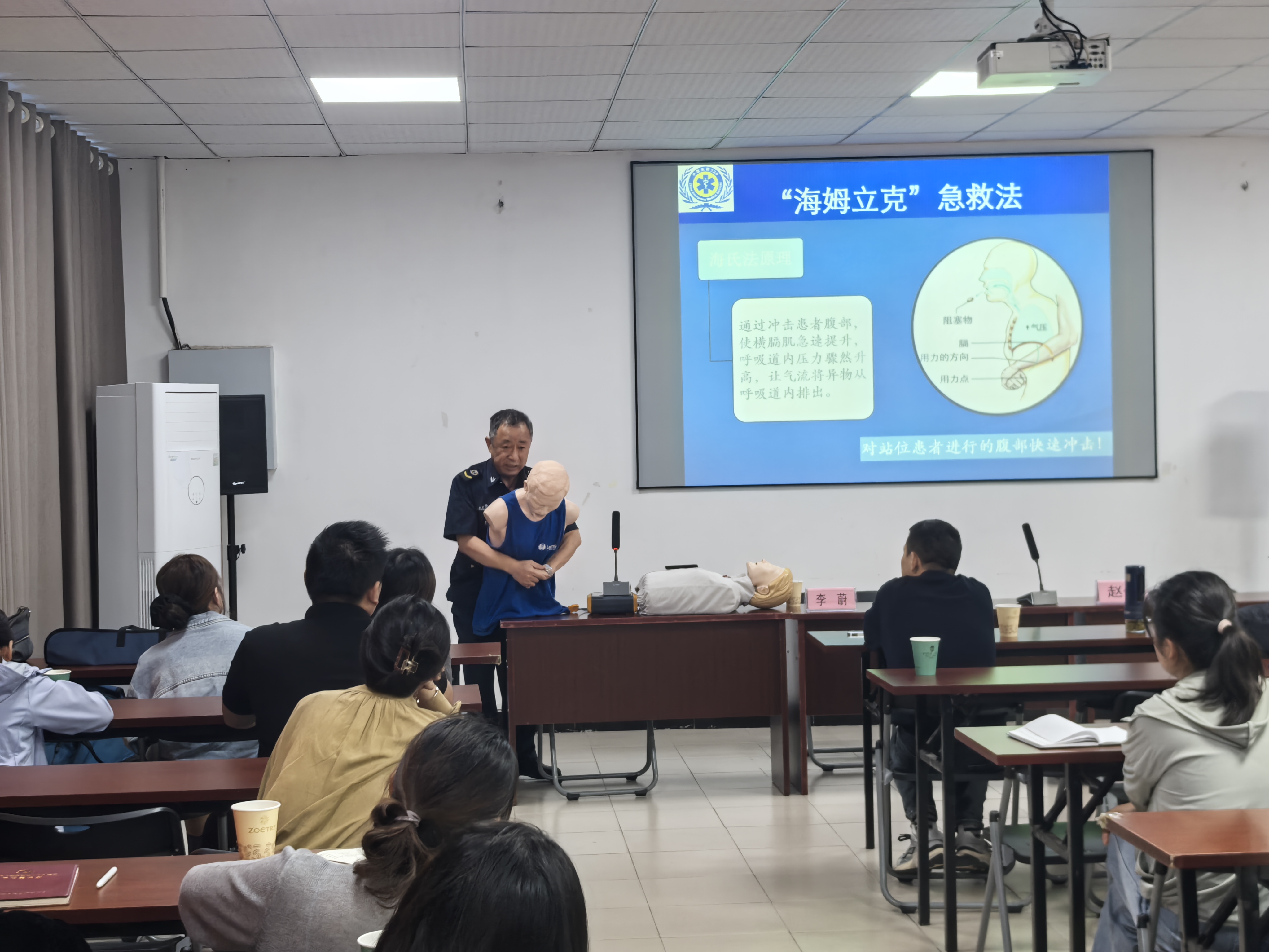 活动现场,淮南市120急救中心急救科科长李蔚通过理论讲解与实操演示相结合的方式,讲解了常见意外伤害及急症现场救急知识,重点介绍了“海姆立克”急救法的原理与操作步骤;此外,还对自动体外除颤仪(AED)的功能与使用方法进行了科普,讲解其自动分析心律、提示电除颤操作的自动化流程,消除大家对专业急救设备的使用顾虑。